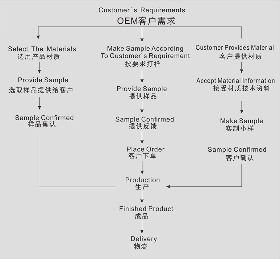 OEM是 Original Equipment Manufacturer 的缩写,通常翻译为“贴牌制造”或“原始设备制造商”,适合已注册品牌,并已完成策划、设计的客户。工厂为客户提供研发及制造工作。